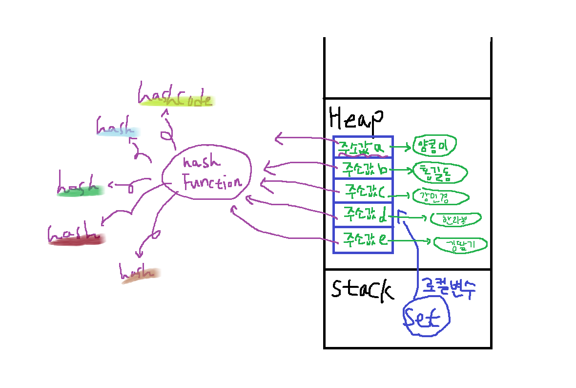 ๐ธ : ๊ฐ ๊ฐ์ฒด๋ฅผ ์์ฑํ ๋ ์ฐธ์กฐ ๋ณ์ 'set'์ด ๊ฐ๋ฆฌํค๋ ์ฃผ์๊ฐ ๊ฐ๊ธฐ ๋ค๋ฅด๊ธฐ ๋๋ฌธ์ hashCode()๋ ๋ค๋ฅด๊ฒ ๋ฆฌํด๋๊ธฐ ๋๋ฌธ์ด์ผ.
