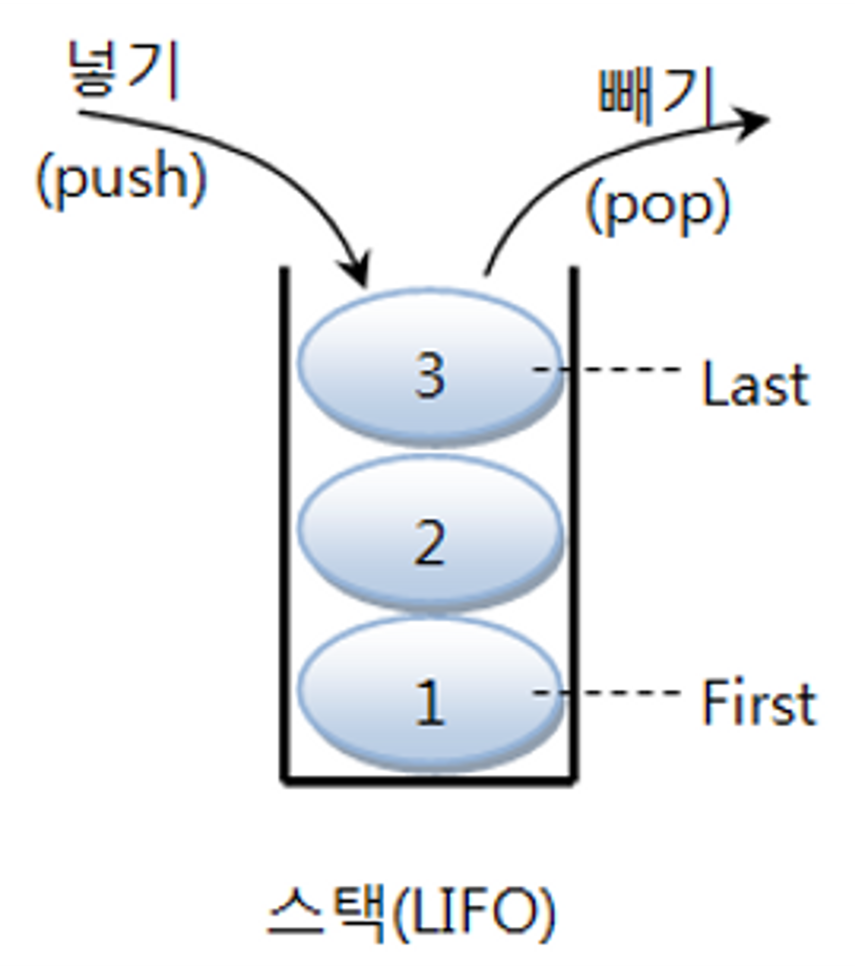 - LIFO(Last in First Out) ๊ตฌ์กฐ, ์คํ์ ์ด์ฉํ ๋ํ์ ์ธ ์์๋ก JVM์ ์คํ ๋ฉ๋ชจ๋ฆฌ๋ฅผ ๋ค ์ ์์ต๋๋ค.
