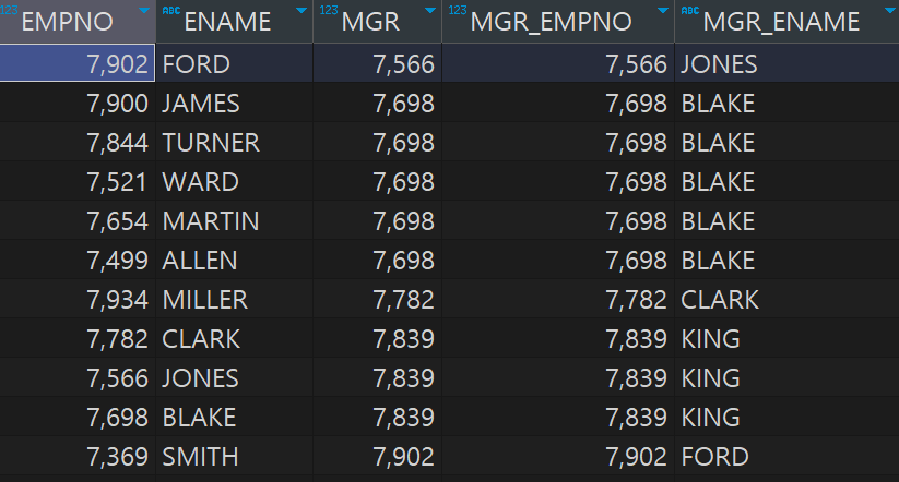ON E1.MGR = E2.EMPNO;