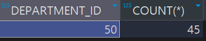 4. EMPLOYEES ํ ์ด๋ธ์์ (๊ฐ์ฅ ๋ง์ ์ฌ์์ด ์ํด ์๋ ๋ถ์ ๋ฒํธ)์ ์ฌ์์๋ฅผ ์ถ๋ ฅ