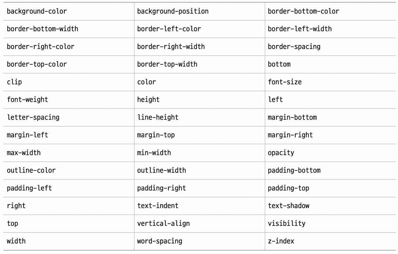 π μ ν ν¨κ³Όλ λ°λμ transition-property μμ±κ³Ό transition-duration μμ±μ ν¨κ» μ¬μ©ν΄μΌ ν¨.