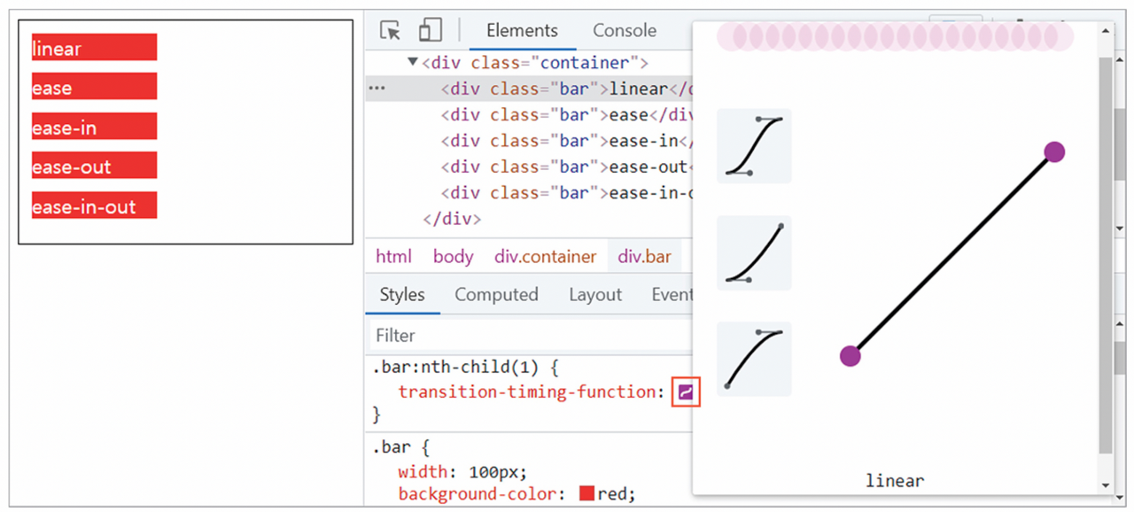 - μ ν΄μ§ ν€μλμ cubic-bezier() ν¨μ(μ¬μ©μ μ§μ )μ μ¬μ©ν μ μμ΅λλ€.