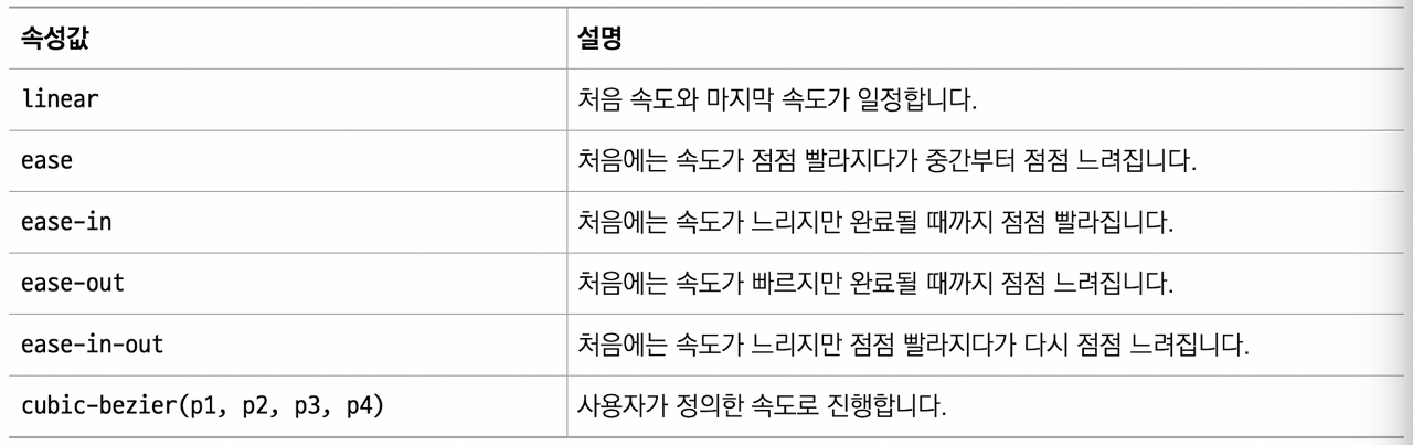 - transition-timing-function : νΈλμ§μ μ μ€ν νν μ§μ