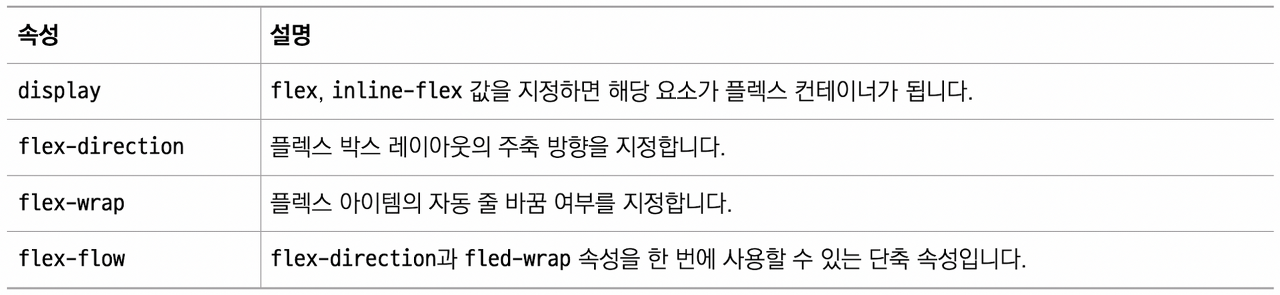 - νλ μ€ μ»¨ν μ΄λ : display μμ±κ°μΌλ‘ flexλ inline-flexκ° μ μ©λ μμλ₯Ό μλ―Έ