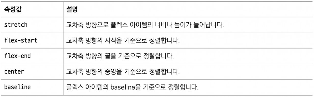 π νλ μ€ λ°μ€ λ μ΄μμμ κΈ°λ³ΈμΌλ‘ align-items μμ±μ stretch κ°μ΄ μ μ©λμ΄ μμ΅λλ€.