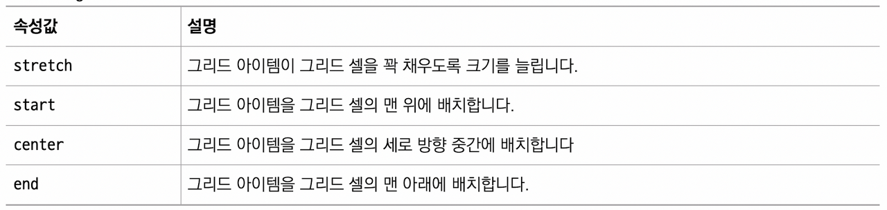 - align-items ์์ฑ์ ์ฌ์ฉํ๋ฉด ๊ทธ๋ฆฌ๋ ์ ์ ๋์ด๊ฐ ๊ทธ๋ฆฌ๋ ์์ดํ ๋ณด๋ค ํด ๋ ๊ฐ ๊ทธ๋ฆฌ๋ ์์ดํ ์ ๊ฐ ๊ทธ๋ฆฌ๋ ์ ์ ์ธ๋ก ๋ฐฉํฅ์ผ๋ก ์ ๋ ฌํ ์ ์์ต๋๋ค.