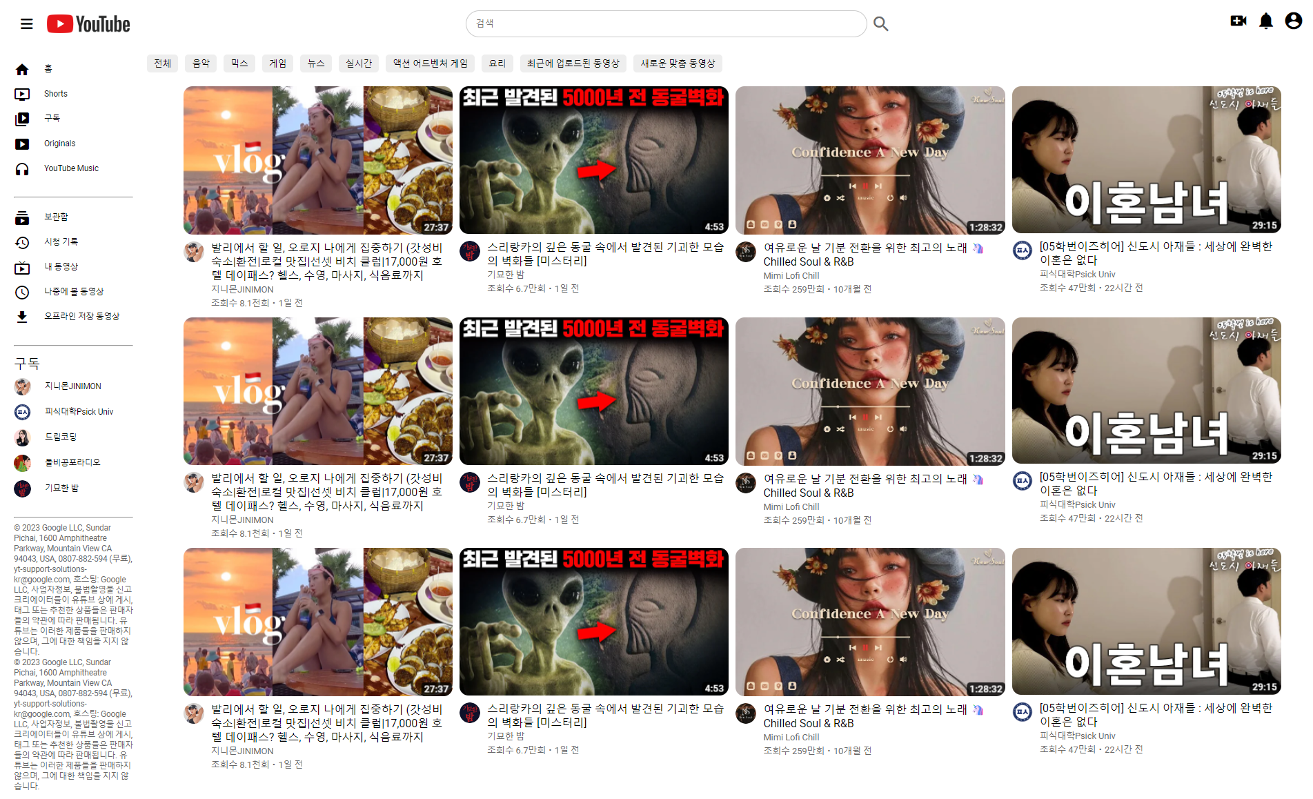 <p>© 2023 Google LLC, Sundar Pichai, 1600 Amphitheatre Parkway, Mountain View CA 94043, USA, 0807-882-594 (๋ฌด๋ฃ), yt-support-solutions-kr@google.com, ํธ์คํ