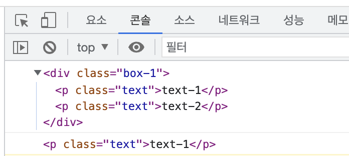 console.log(classEl[0]); // <p class="text">๋ณธ๋ฌธ ๋ด์ฉ ์