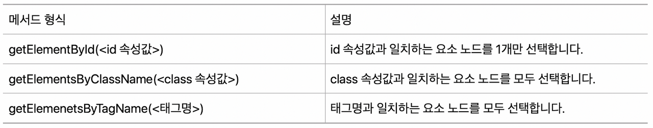 document ๊ฐ์ฒด์ get ๋ฉ์๋์ query ๋ฉ์๋๋ ๋ ๋ค ์ํ๋ ์์ ๋ ธ๋๋ฅผ ์ ํํ๋ค๋ ์ ์ ๊ฐ์ต๋๋ค.