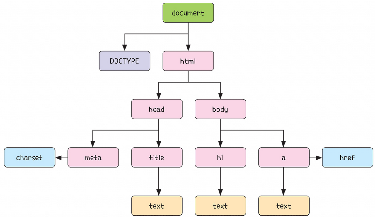 - HTML ๋ฌธ๋ฒ์ผ๋ก ์์ฑํ ํ๊ทธ, ์ฃผ์, ํ ์คํธ์ ๊ฐ์ ๊ตฌ์ฑ ์์๋ค์ ์น๋ธ๋ผ์ฐ์ ์์ ๊ฐ๊ฐ ํ๋์ ๊ฐ์ฒด๋ก ์ธ์ ํฉ๋๋ค.