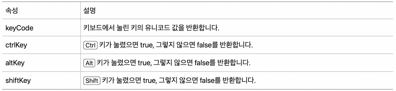 KeyboardEvent ๊ฐ์ฒด ํ์ธ