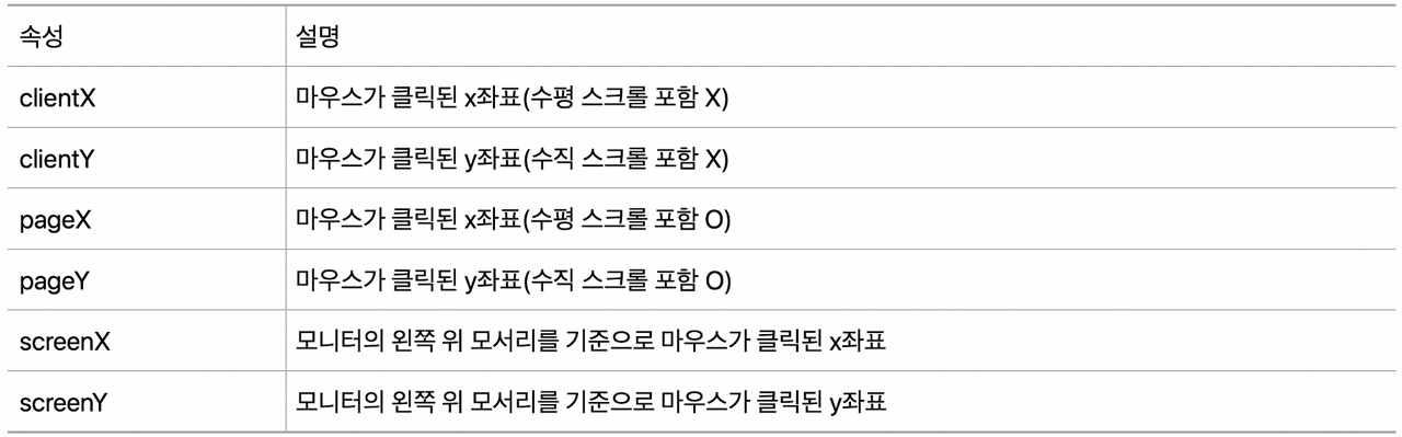 console.log("x์ขํ : " + e.clientX);