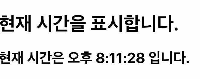 <h2>ํ์ฌ ์๊ฐ์ {currentDate.toLocaleTimeString()} ์