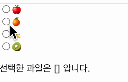 <input type="radio" name="fruits" value="๐ฅ" onChange={handleChange} />