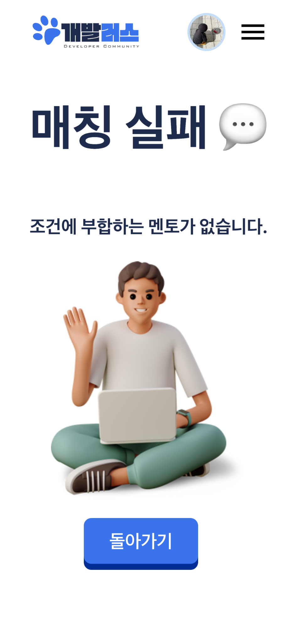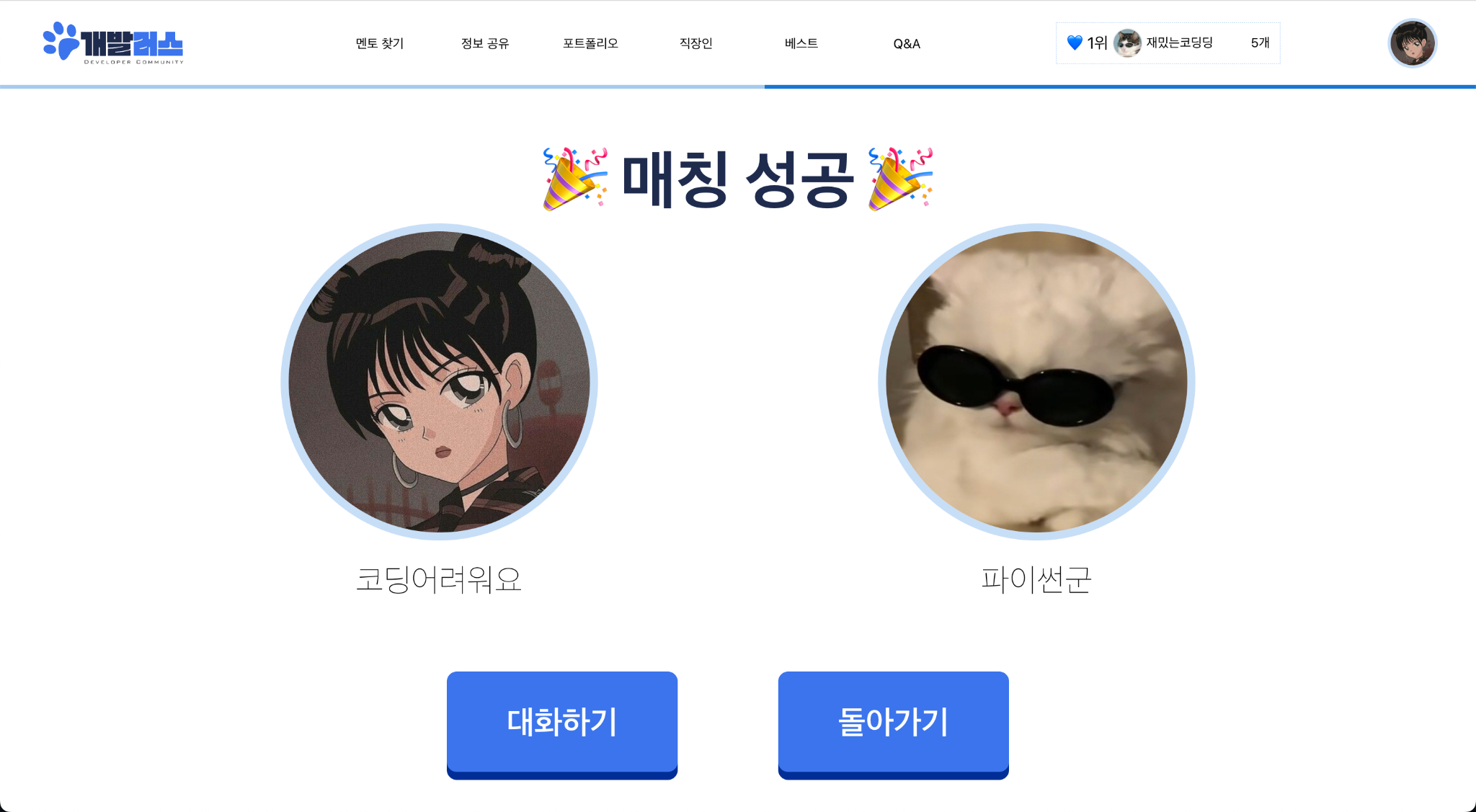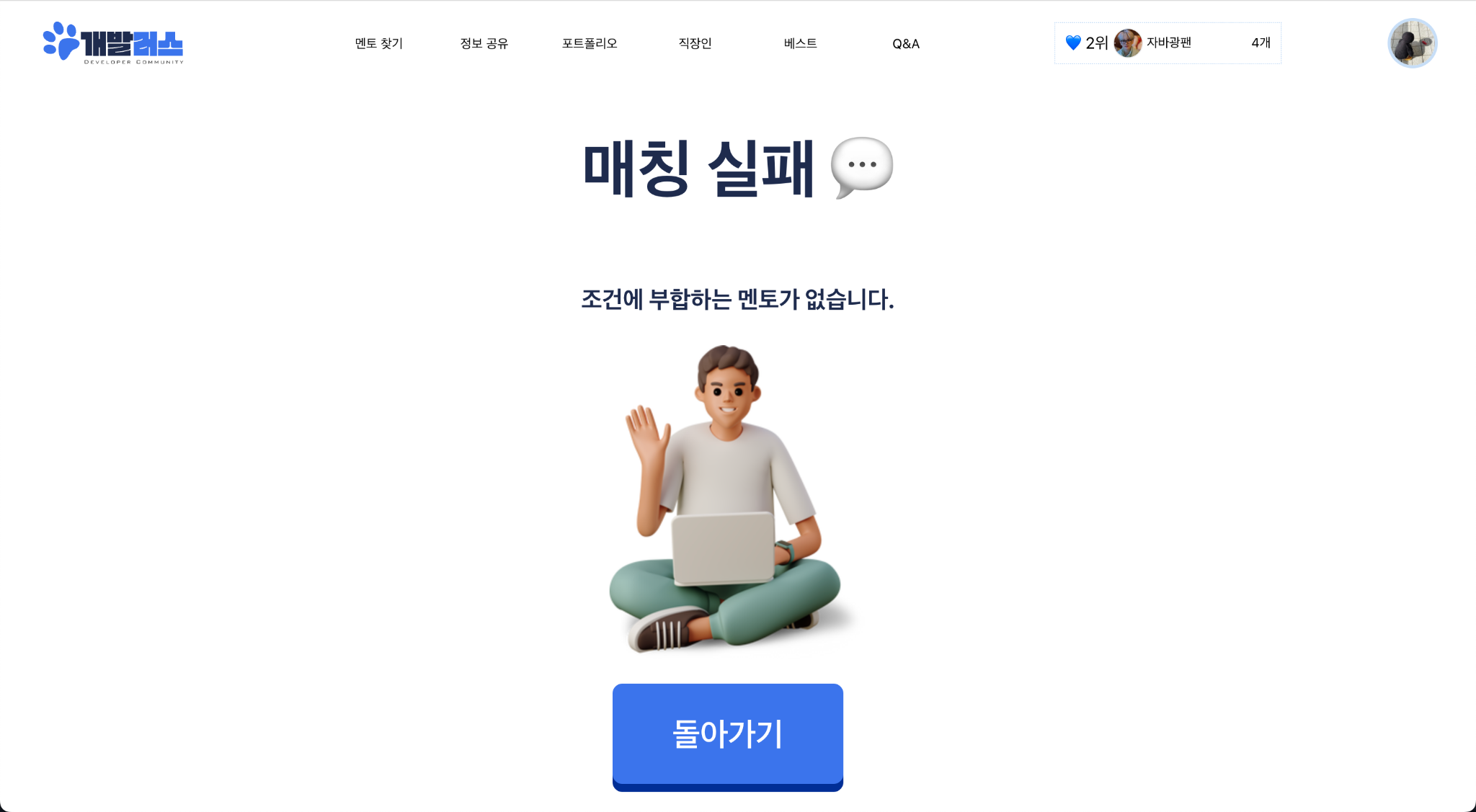 "๋ฉํ ์ฐพ๊ธฐ"๋ 'ํ์' ํน์ '๊ตฌ์ง์'๋ก ๋ฑ๋ก๋ ํ์์๊ฒ๋ง ์ ๊ณต๋ฉ๋๋ค. ๋งค์นญ์ ์ง์ ์ด 'ํ์คํ', '๋ฐฑ์๋', 'ํ๋ก ํธ์๋'์ธ ๊ฐ๋ฐ์ ํ์๊ณผ ์ด๋ฃจ์ด์ง๋๋ค.