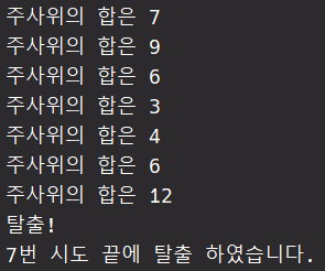 System.out.println("์ฃผ์ฌ์์ ํฉ์ " + (dice1+dice2));