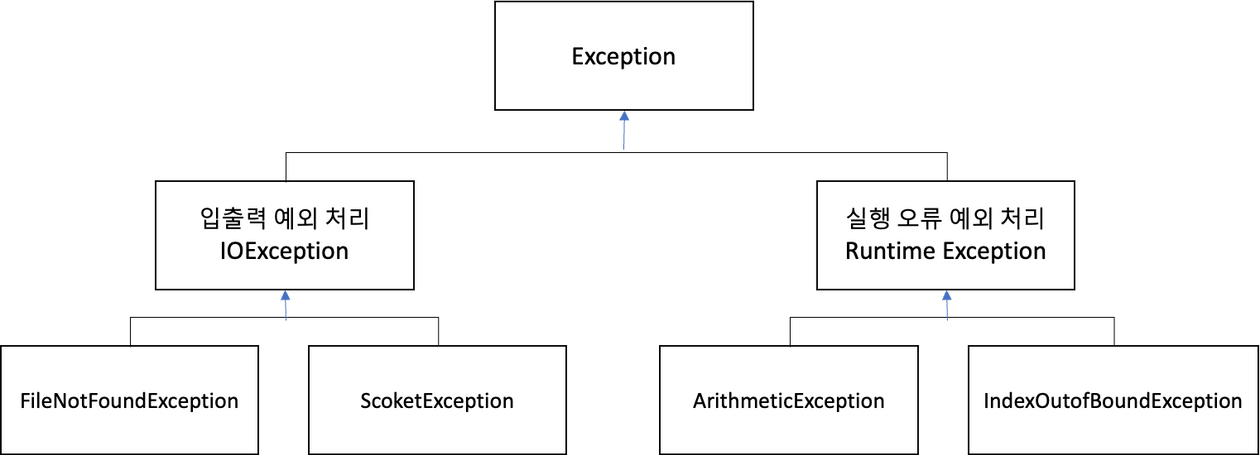 - νλ‘κ·Έλ¨μμ μ²λ¦¬νλ μμΈ ν΄λμ€μ μ΅μμ ν΄λμ€λ Exception ν΄λμ€ μ΄λ€.