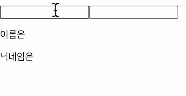 <input type="text" placeholder='์ด๋ฆ' value={member.name} onChange={onChangeName}/><br />