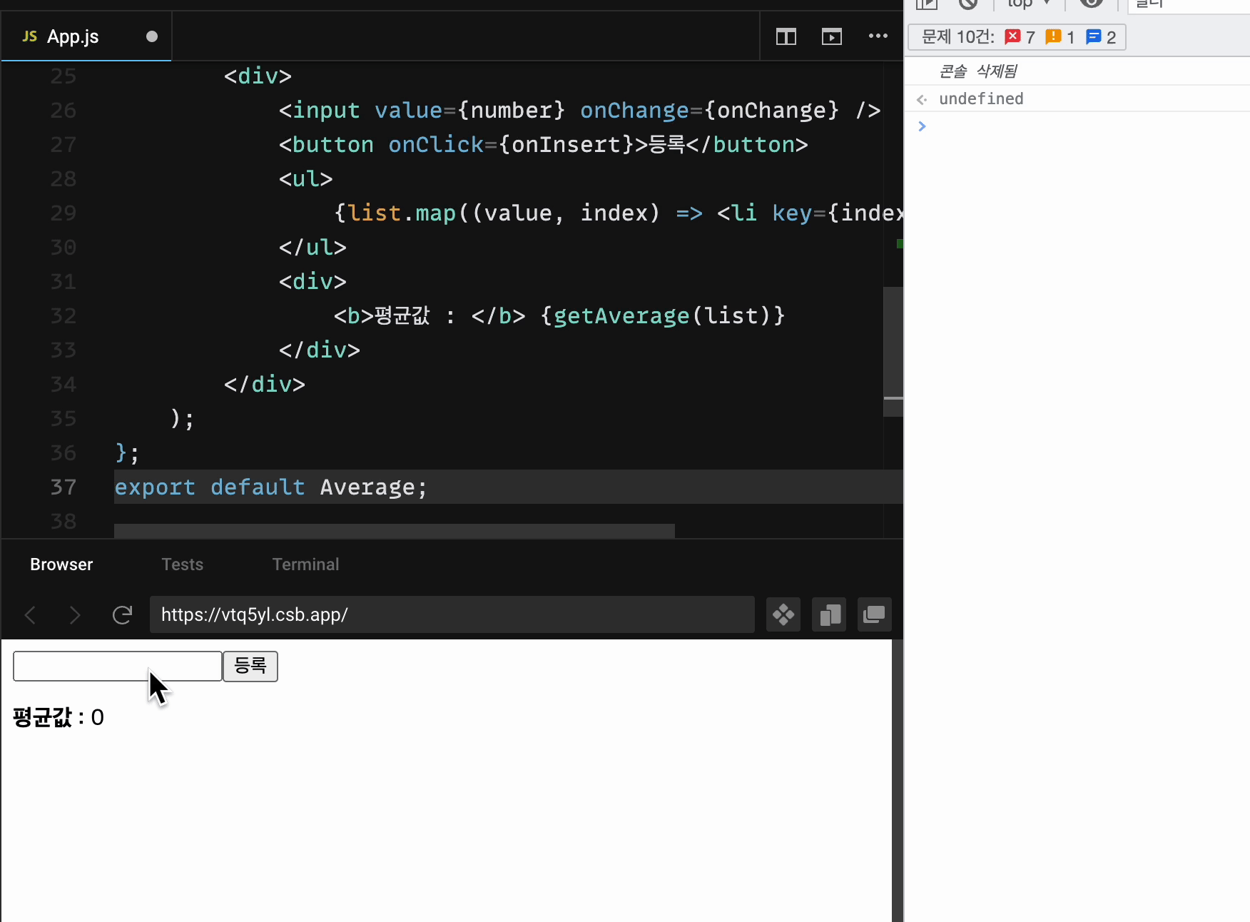 (์ฆ, ์๋ ์์ ์ฝ๋์์ list ๋ฐฐ์ด์ด ๋ณ๊ฒฝ๋ ๋๋ง๋ค getAverage ํจ์๊ฐ ๋ค์ ์คํ ๋ฉ๋๋ค.