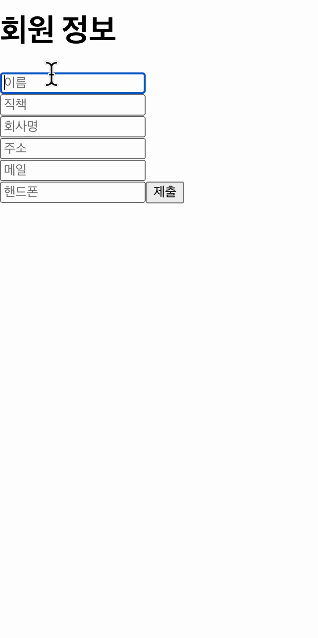 โ๏ธ ์ด๋ฆ, ์ง์ฑ , ํ์ฌ๋ช , ํ์ฌ์ฃผ์, ์ด๋ฉ์ผ, ์ ํ๋ฒํธ๋ฅผ ์ ๋ ฅ ๋ฐ์ ๋ช ํจ ํํ๋ก ์ถ๋ ฅํ๊ธฐ