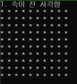 printf("1. ์์ด ์ฐฌ ์ฌ๊ฐํ\n");